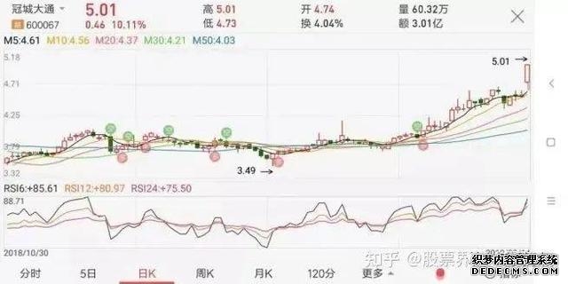 成交量:绿色柱状线表示股票收阴时每日或每周的成交量;红色柱状线表示股票收阳时的成交量。