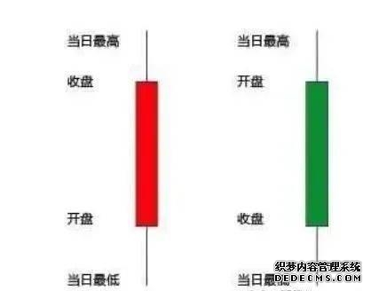 2、K线从形态上分为阳线、阴线和同价线3种类型。阳线是指收盘价高于开盘价的k线,红色。阴线是指收盘价低于开盘价的k线,绿色。同价线是指收盘价等于开盘价的一种特殊k线。