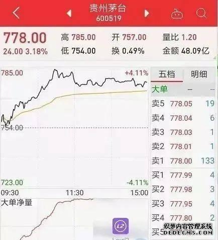 图中的黑线和黄线,叫做分时价位线,是当日股价每分钟移动的曲线,俗称分时走势。黑线代表表示该种股票即时实时成交的价格;黄线表示该种股票即时成交的平均价格,即当天成交总金额除以成交总股数